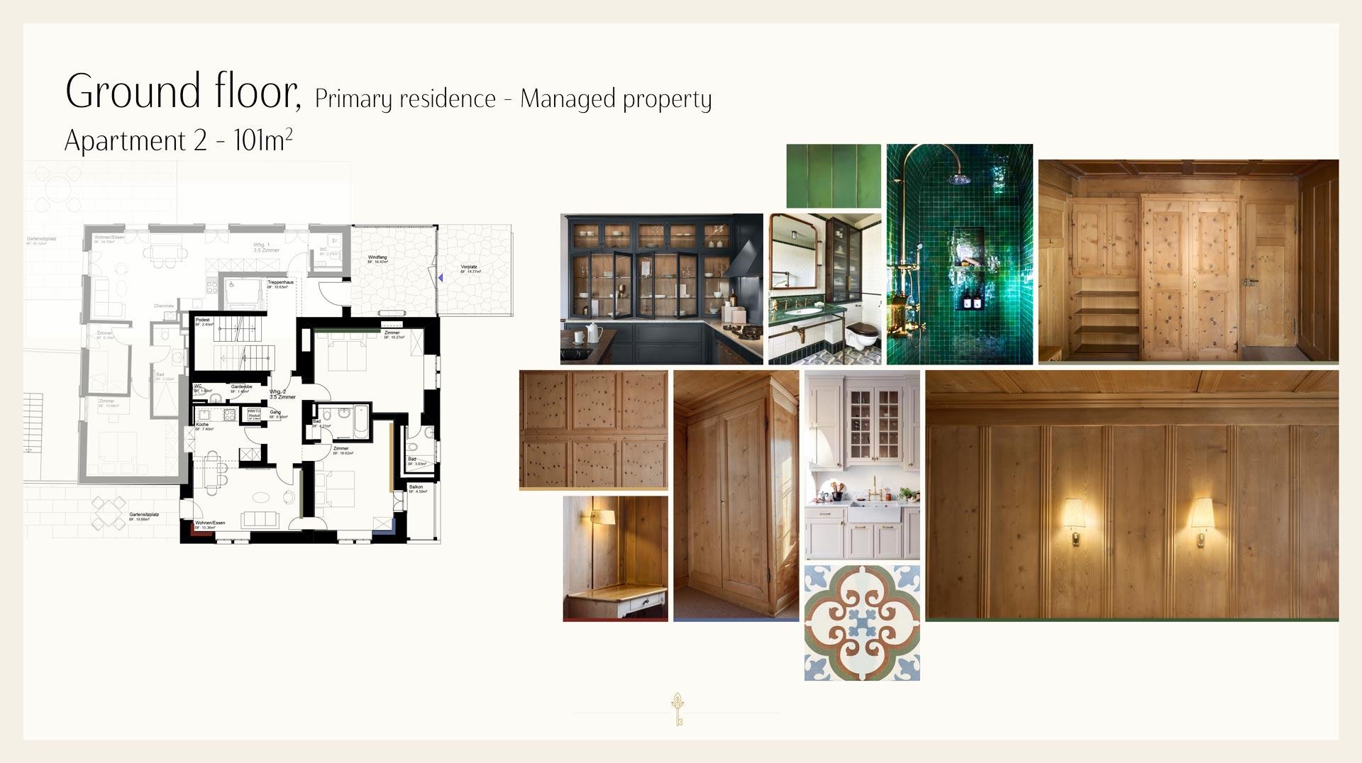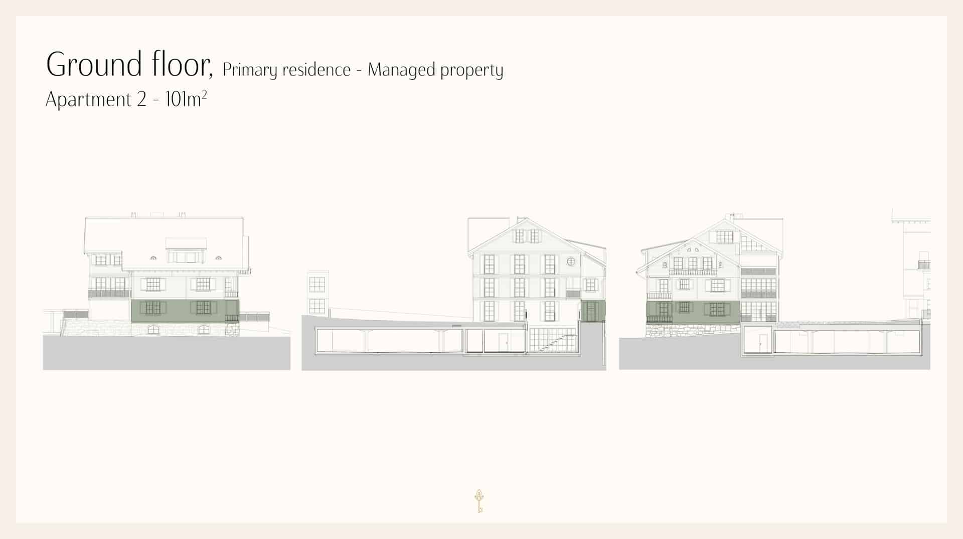 In the basement, you will also find an exclusive fitness, spa and wellness area, a private garage parking space, your own ski room with ski boot warmers and a separate cellar compartment.