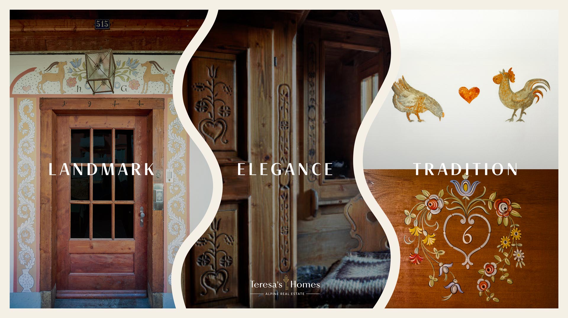 Authentic lattice windows, partly made of wood and partly of metal, underline the unmistakable character of the building and create a beautiful interplay between tradition and modern elegance.